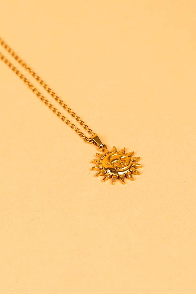 Completa tu atuendo con la Cadena Indie de acero inoxidable dorado con dijen.