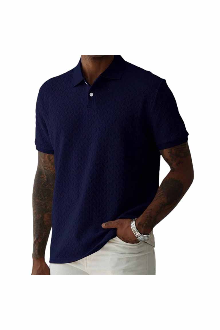 La camisa casual de punto está confeccionada en una tela suave, flexible y ligeramente elástica, generalmente de algodón, poliéster o mezclas con viscosa o elastano. Su tejido de punto