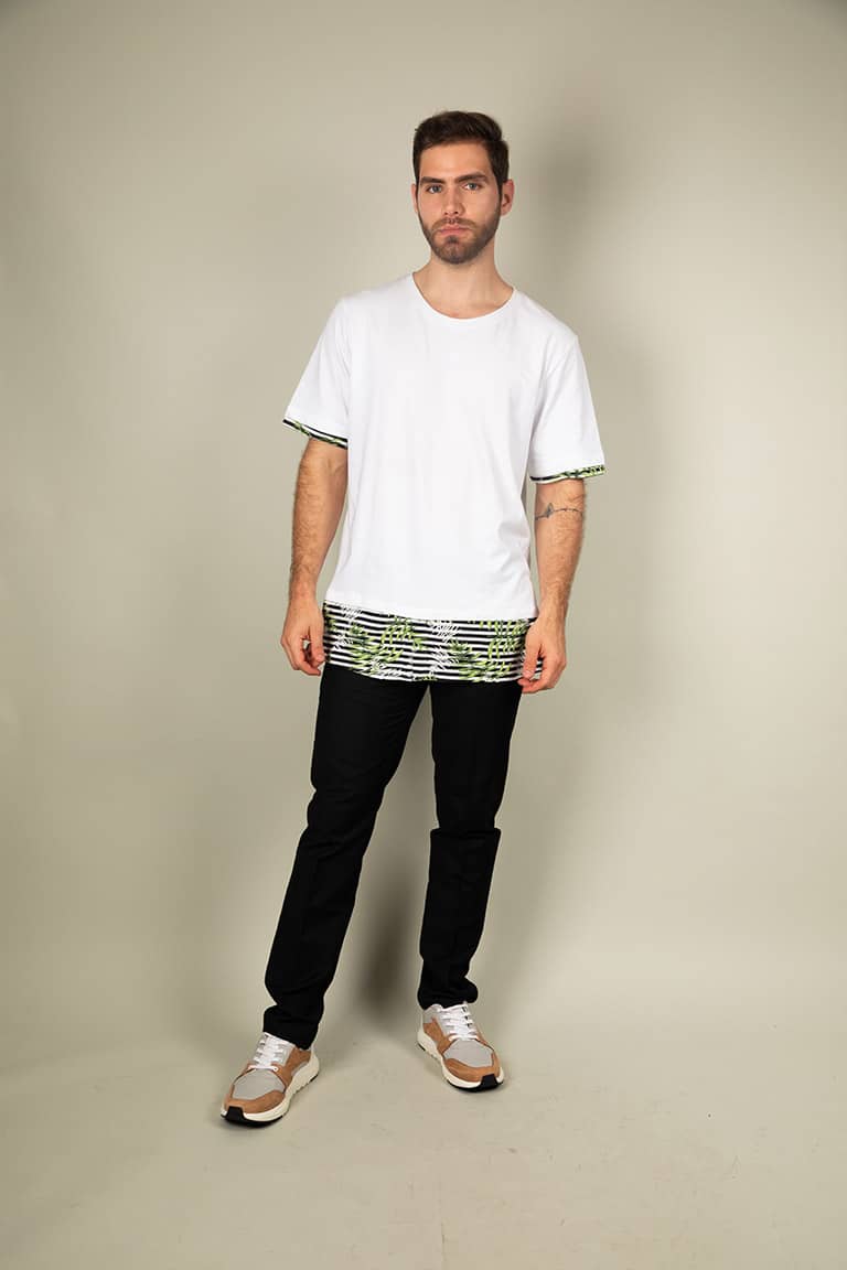 ¿Buscas la camiseta perfecta para tu armario? Esta Camiseta Básica en color blanco es una elección versátil que combina con todo lo que te pongas. Su diseño único incluye un Cuello Desgastado que le añade un toque de estilo a tu look.