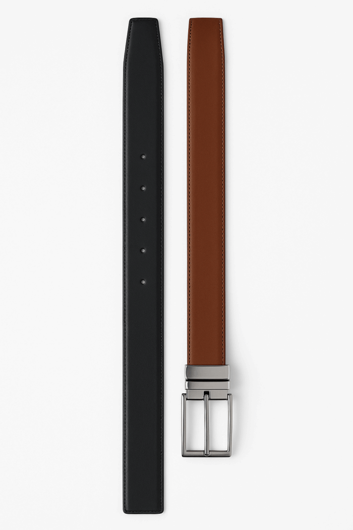 Los cinturones reversibles de cuero estilo formal ofrecen dos opciones de color en un solo accesorio, combinando elegancia y practicidad. Ideales para looks atractivos y versátiles.