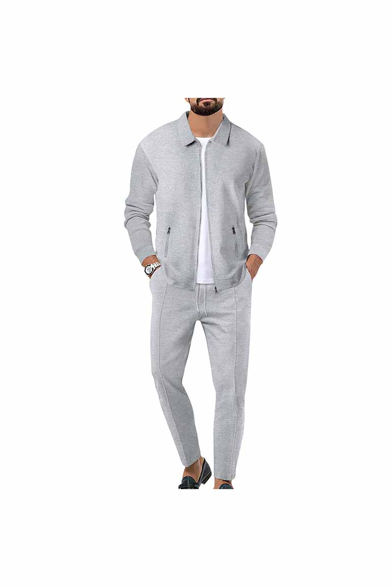 Conjunto Casual Chaqueta y Pantalon Liso Gris
