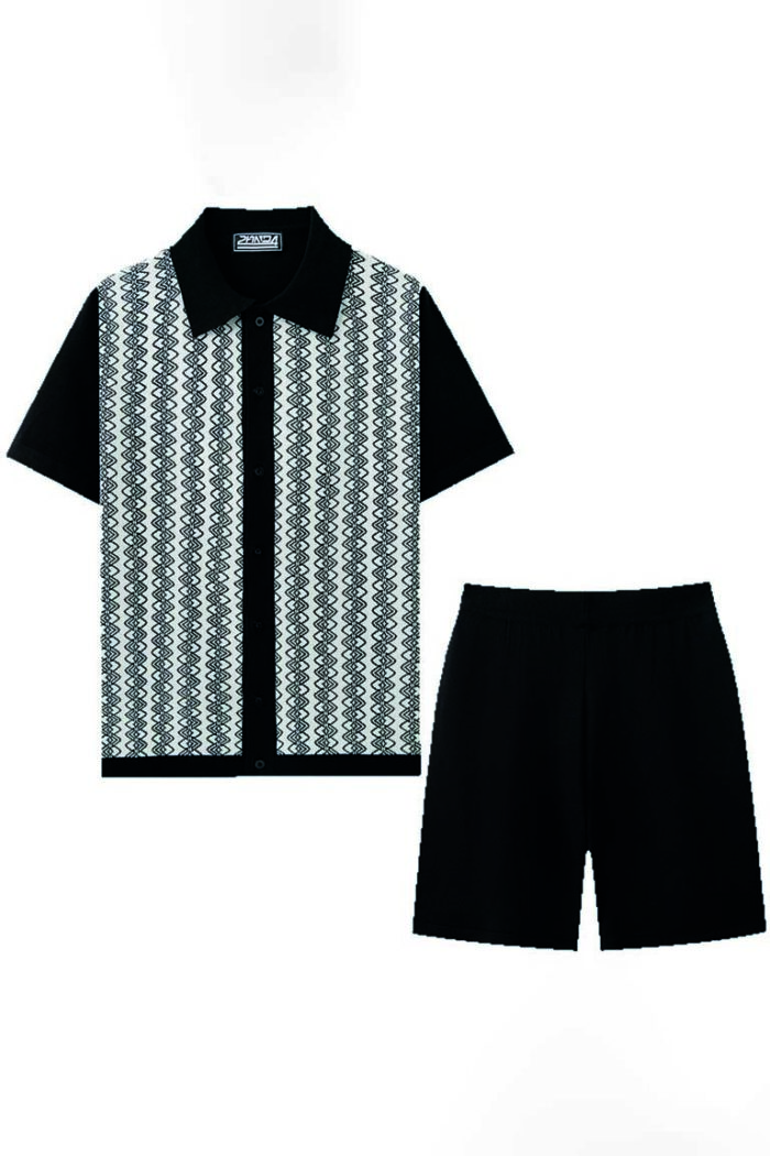 Conjunto en color negro compuesto por camisa tejida de manga corta y short a juego. Diseñado para quienes buscan elegancia relajada y practicidad en un mismo look. El tejido aporta textura y distinción, mientras que el corte moderno asegura libertad de movimiento y estilo versátil, ideal para un d?a din?mico que transita entre lo casual y lo sofisticado