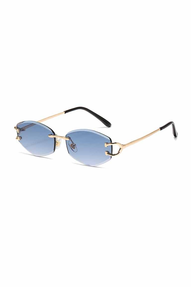 Estas gafas hexagonales sin marco con detalles dorados y lentes color celeste brindan un toque refrescante y elegante a tu look. Además, las lentes cuentan con protección UV para mantener tus ojos seguros mientras disfrutas de un estilo único y contemporáneo.