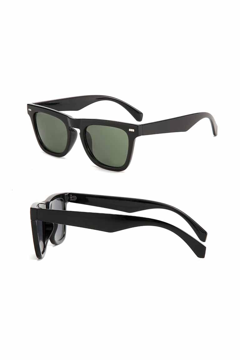 Gafas con montura negra de forma media cuadrada y lentes verdes, que combinan un diseño elegante y moderno. Con protección UV, ofrecen comodidad y seguridad, perfectas para quienes buscan un estilo cómodo y funcional.