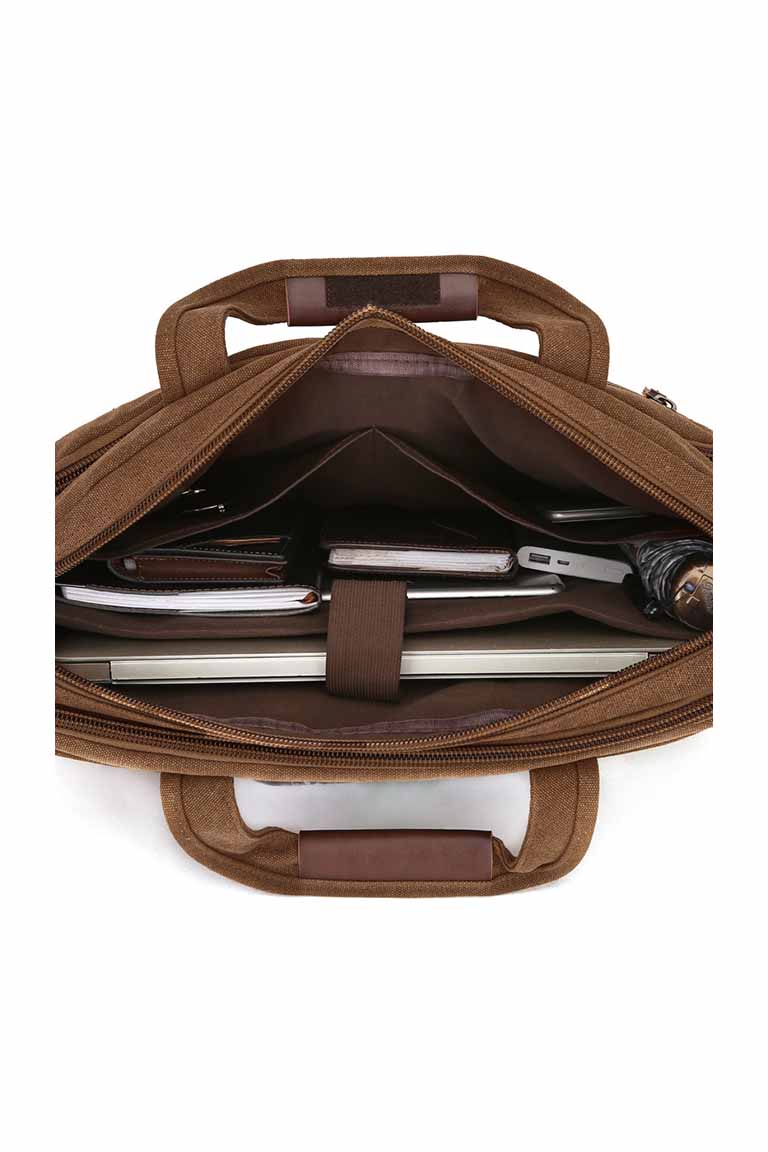 Confeccionado con canva resistente, este maletín es perfecto para llevar tu portátil con seguridad, gracias a su interior acolchado y compartimentos organizadores.