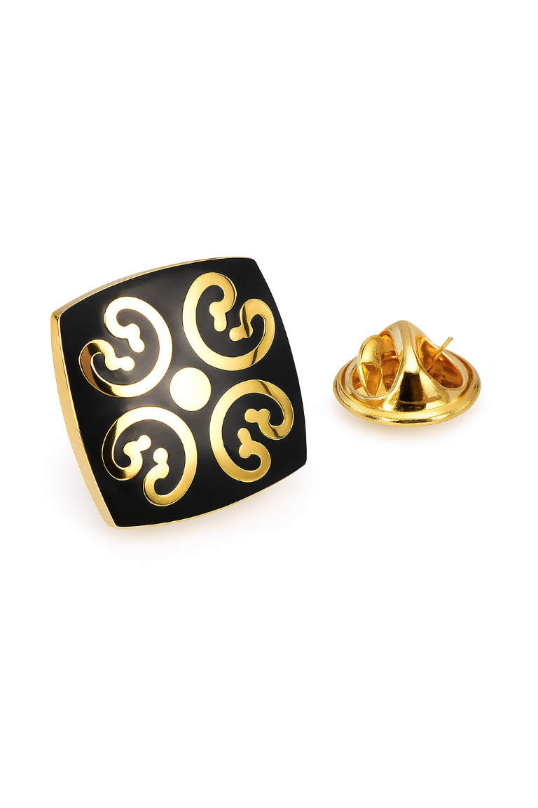 Contraste elegante y contemporáneo. El Pin Cuadro Negro Dorado mezcla la sobriedad del negro con el brillo del dorado, creando un equilibrio entre lo clásico y lo moderno. Ideal para quienes aprecian el dise?o geométrico y minimalista. Versátil para cualquier ocasión.