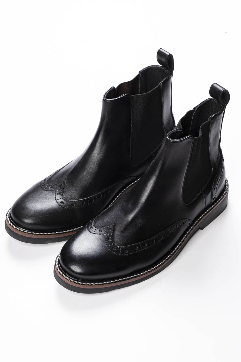 Zapatos 100% cuero, tipo botin con brocado en punta y suela antideslizante