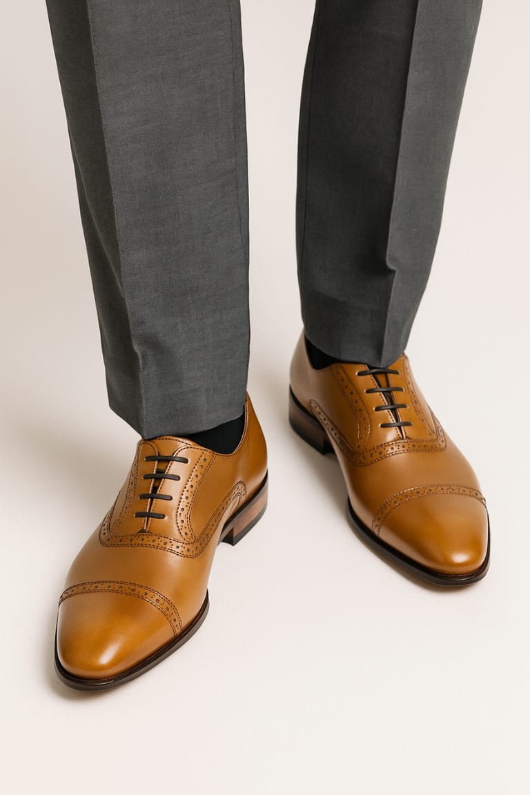 Zapato estilo brogue Cap-Toe con cordones en color caoba. con esta opción marcarás la diferencia.