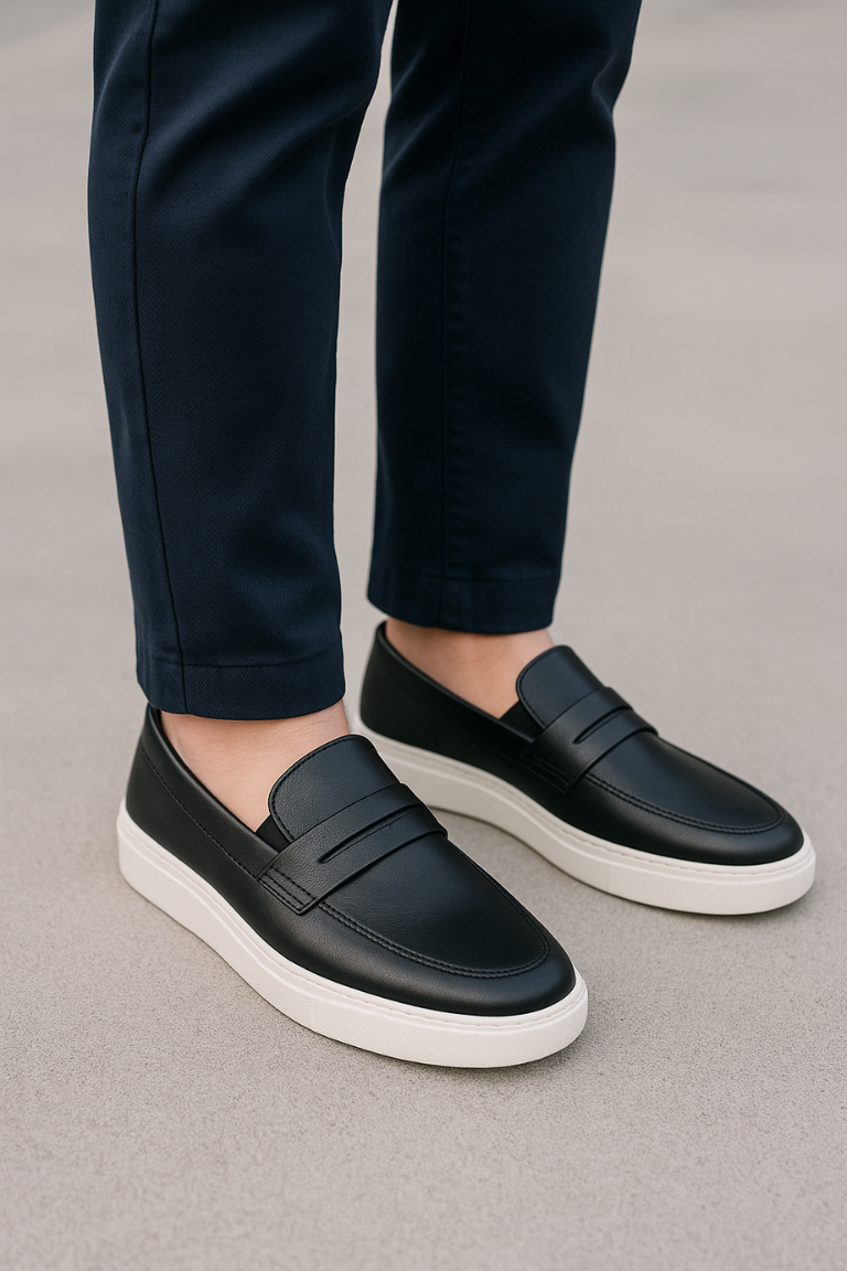 Mocasines casuales con antifaz, confeccionados en cuero ecuatoriano y suela moderna. Comodidad y estilo en cada paso